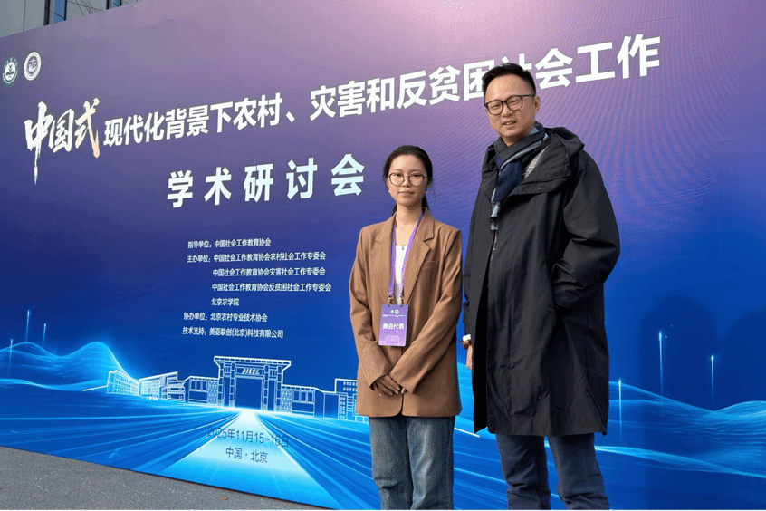 社工赋能,城乡共兴。2025年11月14日,广州南方学院公共管理学院杜俊荣老师带领学生何宛潼前往北京农学院,参与“中国式现代化背景下农村、灾害和反贫困社会工作”学术研讨会。
