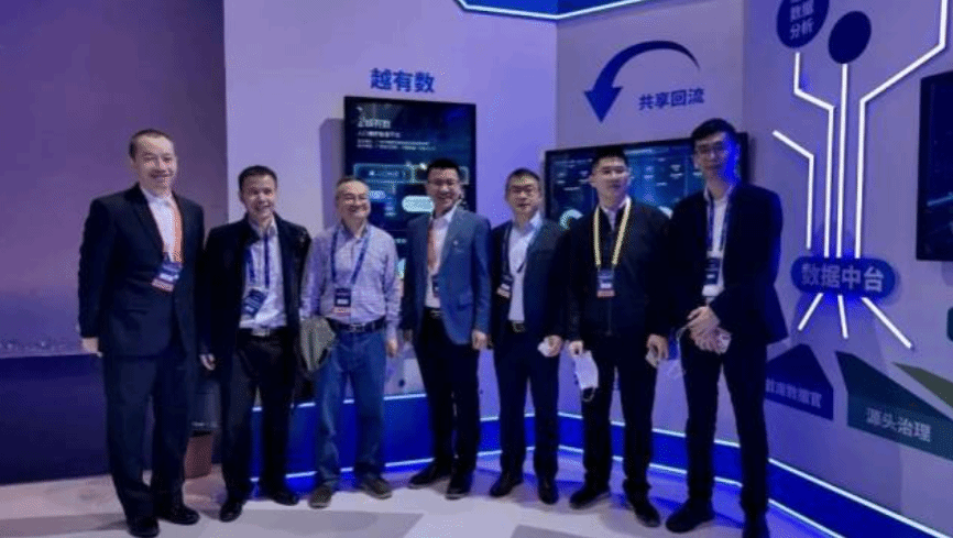 图说:2021年11月26日,2021(第十六届)中国电子政务论坛暨首届数字政府建设峰会在广州正式开幕。广州市越秀区政务服务数据管理局、广州南方学院和中国联通公司广东分公司、清远市北江区块链研究院等“越有数”研发单位主要负责同志在峰会现场合影留念。