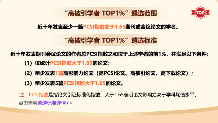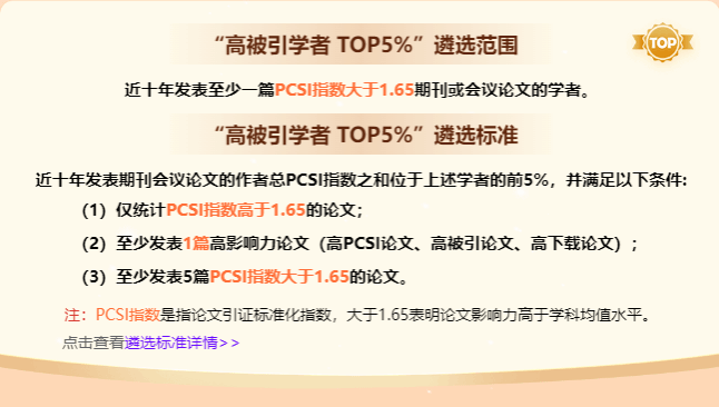 “高被引学者”遴选范围