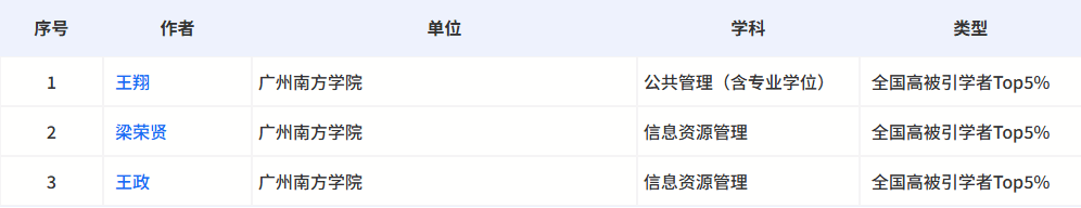 广州南方学院四位老师入选“ 2025 全国高被引学者”名单!