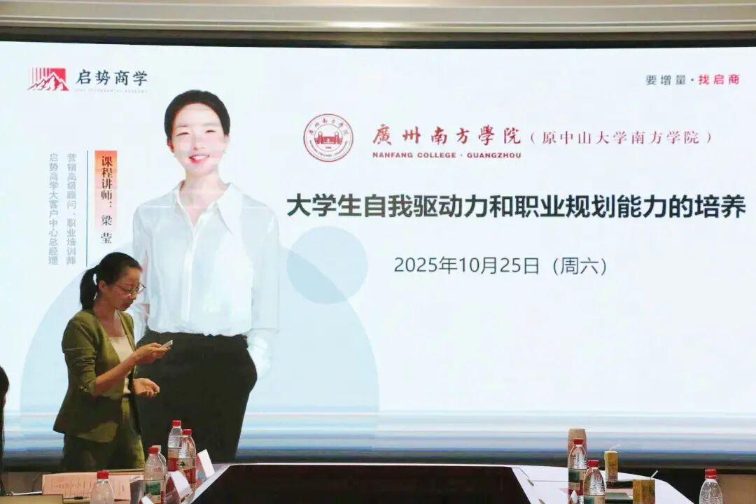 启势商学咨询集团大客户经理梁莹女士在会上分享了大学生自我驱动力和职业规划能力的培养话题。梁经理指出,当今的企业高度重视年轻大学生培养,很多企业都会提供系统入职培训与长期导师带教,助力其快速融入职场、发挥价值。梁经理强调,大学生职业规划应聚焦三大方向:热爱、收入、平衡,并就以上三个核心要点提出指导建议,包括以长期的热爱投入工作和结合学识进行阅历提升,理性看待“收入需求”,从“狭义享受生活”转向“工作与生活平衡”等。