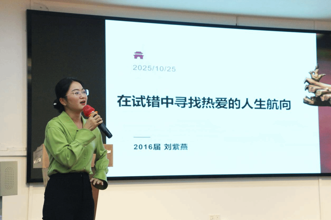 广州南方学院公共管理学院人力资源管理专业2016届毕业生刘紫燕师姐以“在试错中寻找热爱的人生航向”为主题,向学弟学妹们分享人生探索经验。她指出,试错是探寻热爱、明确人生方向的关键路径。她鼓励大学生在大学阶段不要害怕尝试,要敢于在多样领域中探索,于试错过程里不断认识自我、发掘兴趣,进而找到内心真正热爱和擅长的事物,为人生锚定航向。