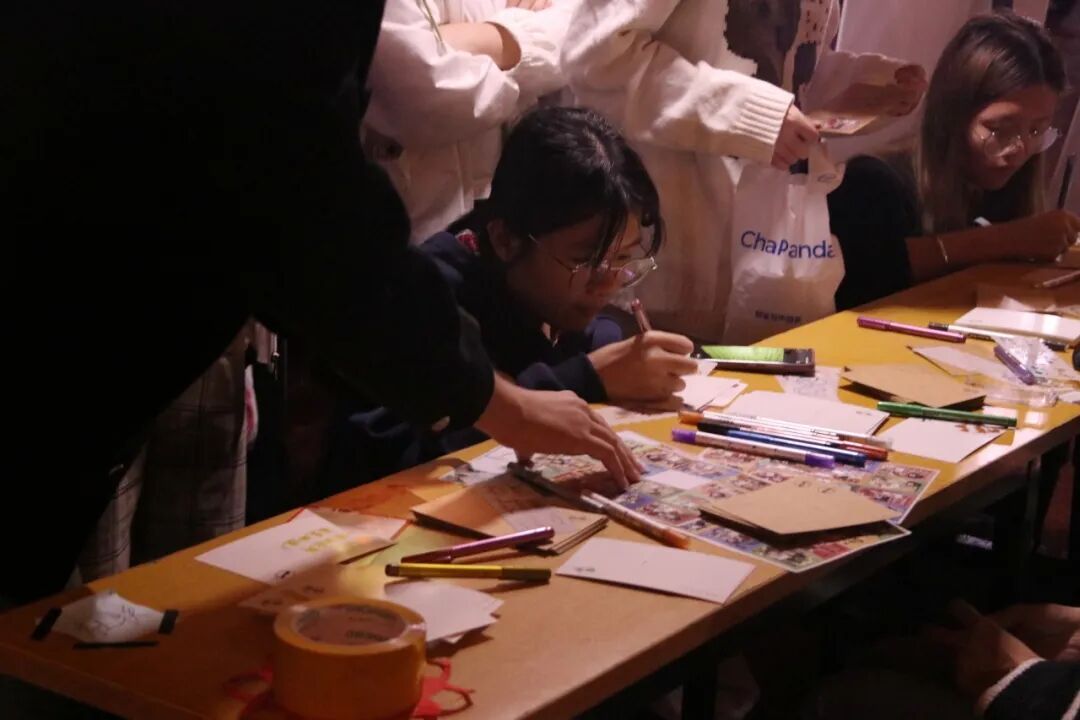 明信片上,有人写下 “非遗不是老古董,是刻进 DNA 的文化” 的感悟,有人临摹 “一针一线绣山河” 的非遗句子。同学们悄然亲近、理解并传递珍贵文化基因,拍摄由自己亲手书写的纪念品的同时成为非遗传播者,为夜市增添情感与个性。