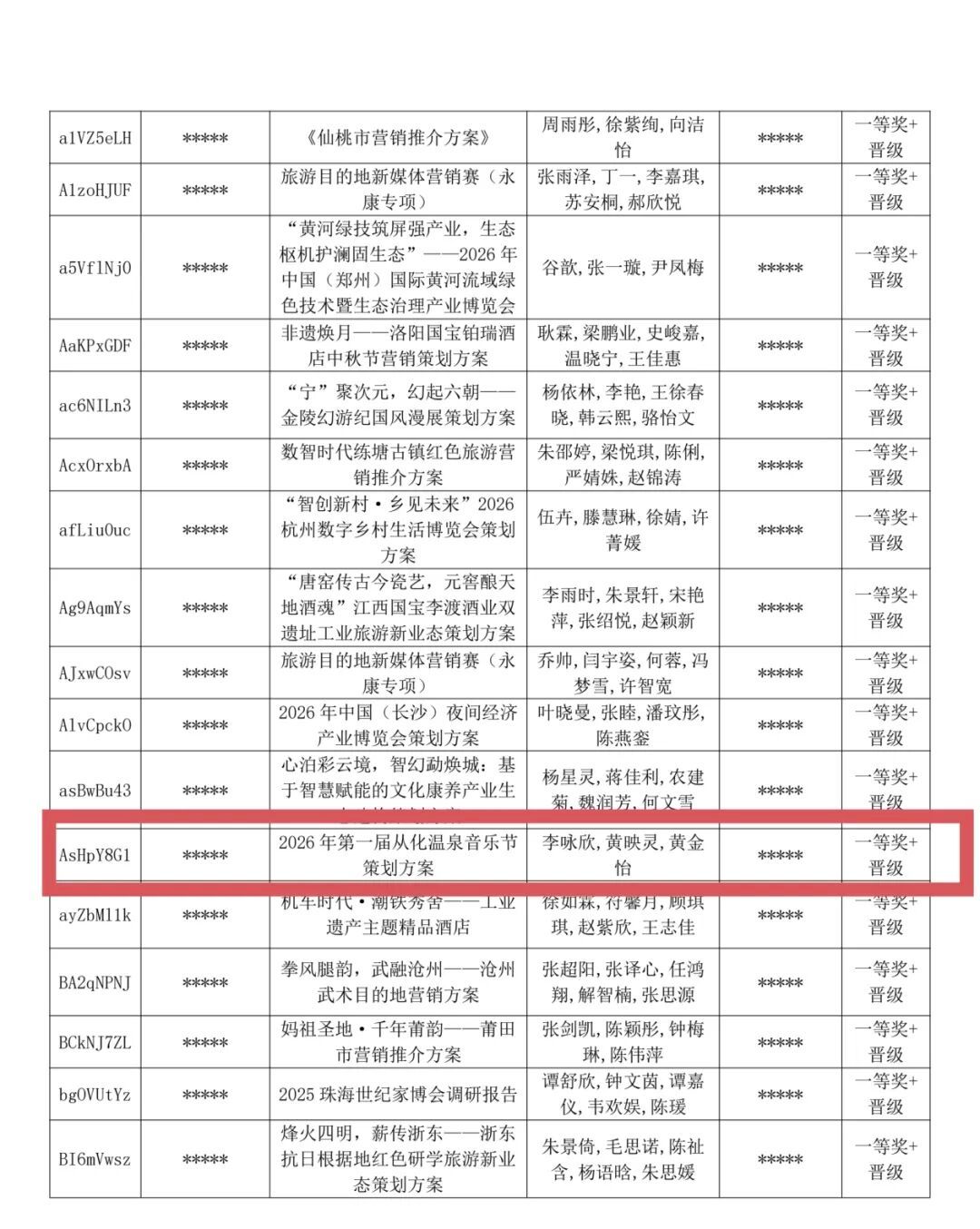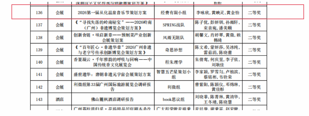 全国一等奖:李咏欣、黄金怡、黄映灵的项目《2026年第一届从化温泉音乐节策划方案》