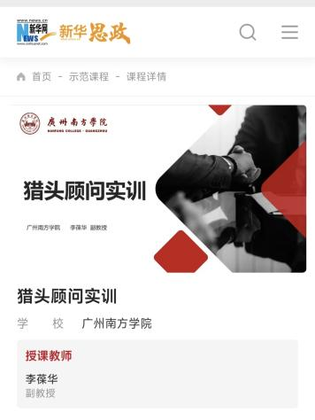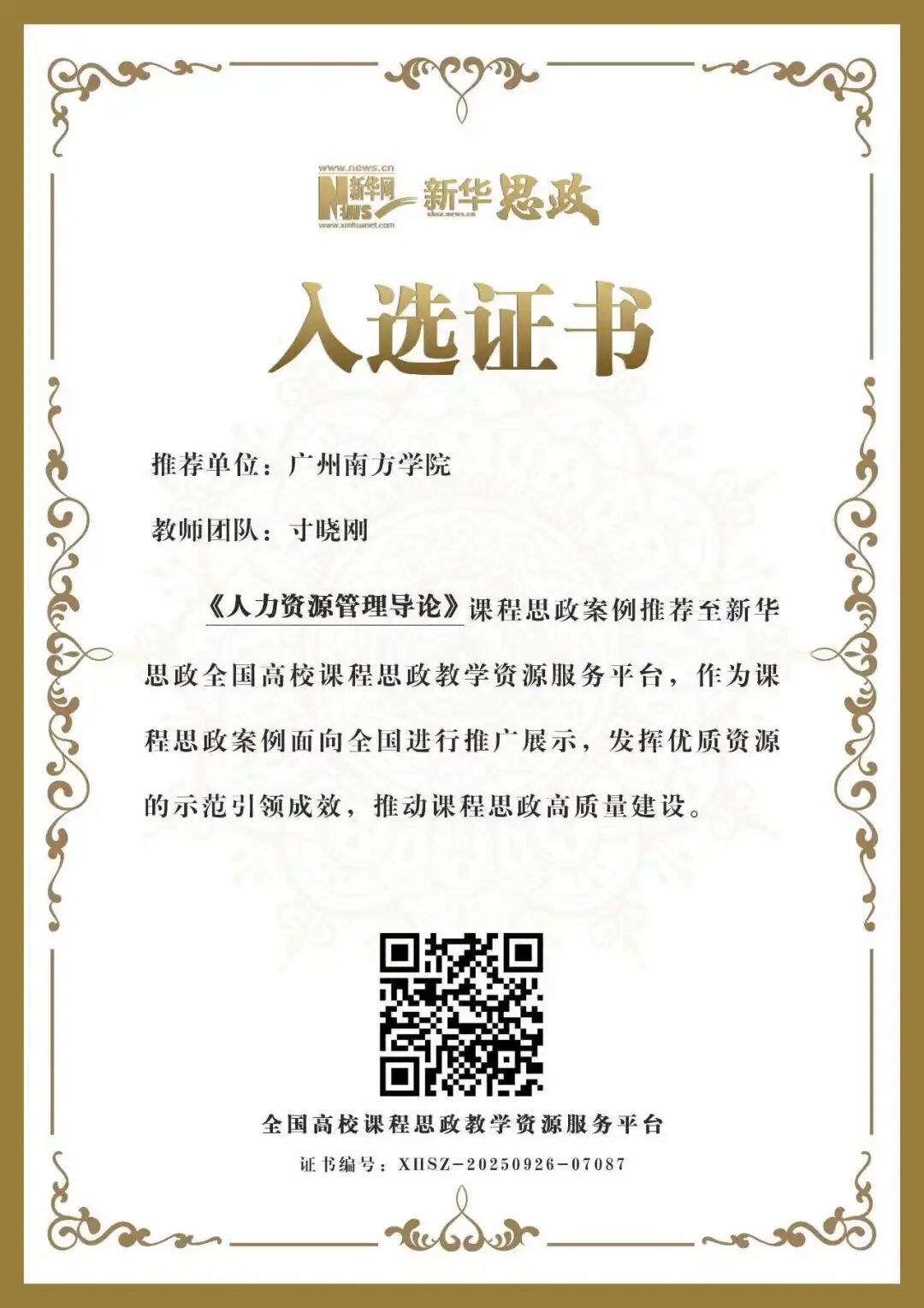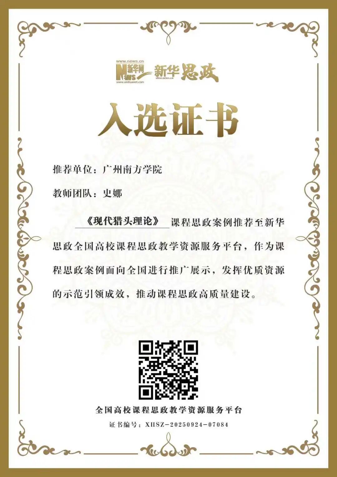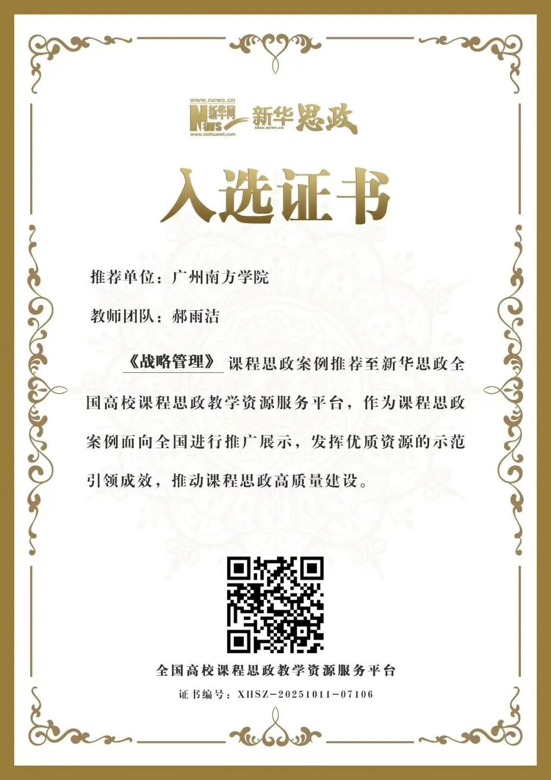 此前,刘佳老师的《设计学概论》课程已入选新华思政课程资源平台;截至目前,公共管理学院已有7门课程入选。长期以来,广州南方学院公共管理学院始终将课程思政建设作为落实立德树人根本任务的重要抓手,积极探索“三全育人”,构建了全员育人、全过程育人、全方位育人的良好格局。此次6门课程入选新华思政平台,正是学院课程思政建设成果的展示,也是学院持续推进课程思政高质量发展的动力。未来,广州南方学院公共管理学院将继续深化课程思政建设,为培养更多具有公共精神、勇担社会责任的高质量专业人才贡献力量!