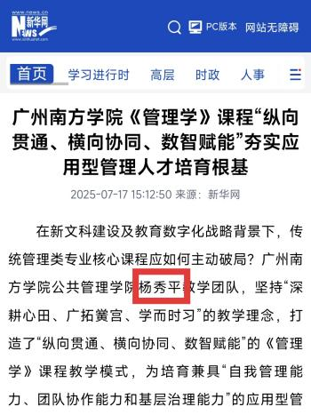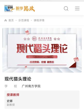 广州南方学院公共管理学院的6门优质课程入选新华思政平台!我院杨秀平老师、史娜老师、寸晓刚老师、李葆华老师、郝雨洁老师、梁思遥老师、马倩颖老师入选的6门课程,涵盖多个核心领域,每一门课程都凝聚着教师们的心血与智慧,将思政元素与专业知识巧妙融合,实现了知识传授与价值引领的有机统一。此次入选的6门课程及授课教师分别是: