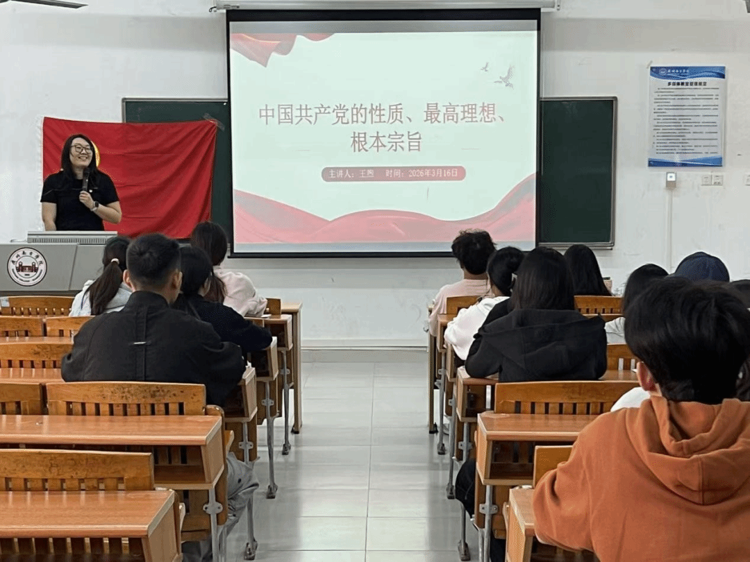 3月16日,公共管理学院教工党支部宣传委员王煦老师开展了以《中国共产党的性质、最高理想、根本宗旨》为主题的党课培训。此次培训围绕党的理想信念、性质宗旨、基本纲领与发展规律展开讲解,帮助同学们进一步夯实理论基础,深刻理解党的初心使命与先进内涵。王煦老师勉励大家坚定理想信念,牢记初心使命,在学习和生活中以实际行动向党组织靠拢,不断提升思想觉悟与责任担当。