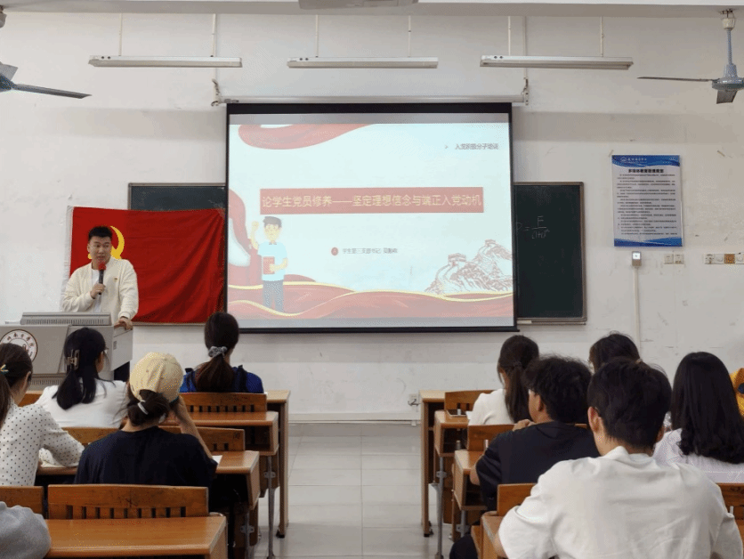 3月17日,公共管理学院学生第三党支部书记莫顺政老师开展了以《论学生党员修养——坚定理想信念与端正入党动机》为主题的党课培训。此次党课从中国共产党的三大历史贡献、对党的认识以及党员的权利和义务、树立正确的入党动机、如何以实际行动争取早日入党四个方面展开,带领同学们深入学习党的理论知识,深刻领会党的思想内涵与精神实质。莫顺政老师鼓励同学们以党员标准严格要求自己,加强党性锻炼,提升综合素质,在学习和生活中发挥先锋模范作用,为党和人民的事业贡献青春力量。