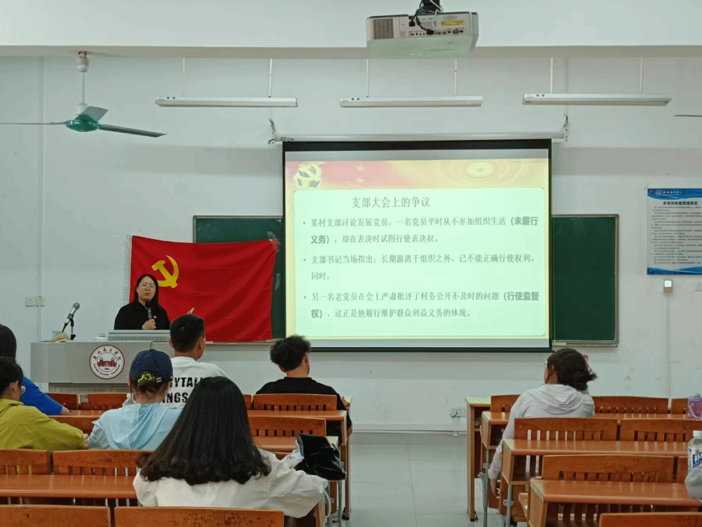 3月19日,公共管理学院党总支副书记张佩怡老师开展了以《认真履行党员义务,正确行使党员权利——争做新时代合格共产党员》为主题的党课培训。此次党课从党员权利与义务的定义与意义、党员八项义务与八项权利、二者辩证统一关系、正确践行的实践要求,以及大学生党员履行义务的实践途径五个方面展开,带领同学们深入学习党章要求,深刻领会权责统一的思想内涵。张佩怡老师对党员权利与义务的细致解读,让同学们对合格党员标准有了更清晰的认知;通过对辩证关系与实践路径的学习,大家进一步端正了思想、坚定了理想信念。