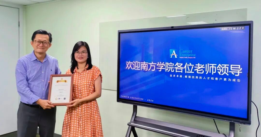 颁发聘书: 广州赛睿人力资源有限公司创始人廖继斌为黄水清老师颁发聘书。通过导师进驻企业,深度参与到企业的猎头项目,完整体验从项目选择到offer跟进的十大流程。