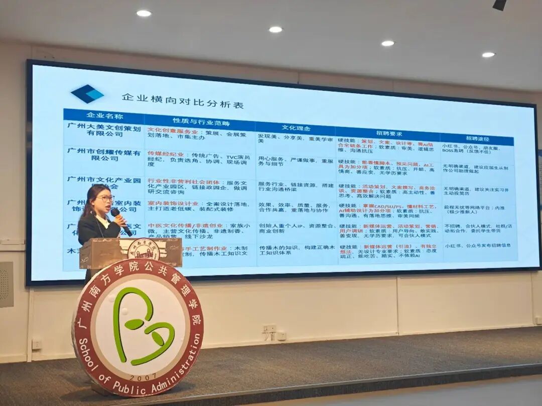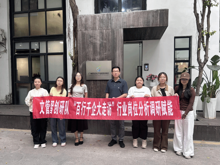 2026年2月24日至27日,广州南方学院公共管理学院“文管智创研队”(成员:李恩、张海燕、余颖姗、何鑫、黄宝枝)在蒋珺、梁颖姿老师指导下,依托“百行千企大走访”岗位分析大赛的平台,走进广州6家不同类型文化企业与行业组织,与创始人、设计总监、协会秘书、工作室主理人等一线从业者深度对话,聚焦文化产业管理岗的人才要求与行业趋势,带回一份来自行业一线的真实参照。