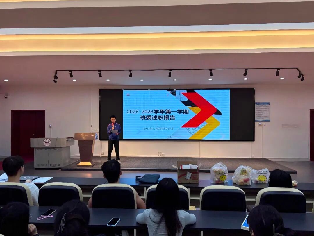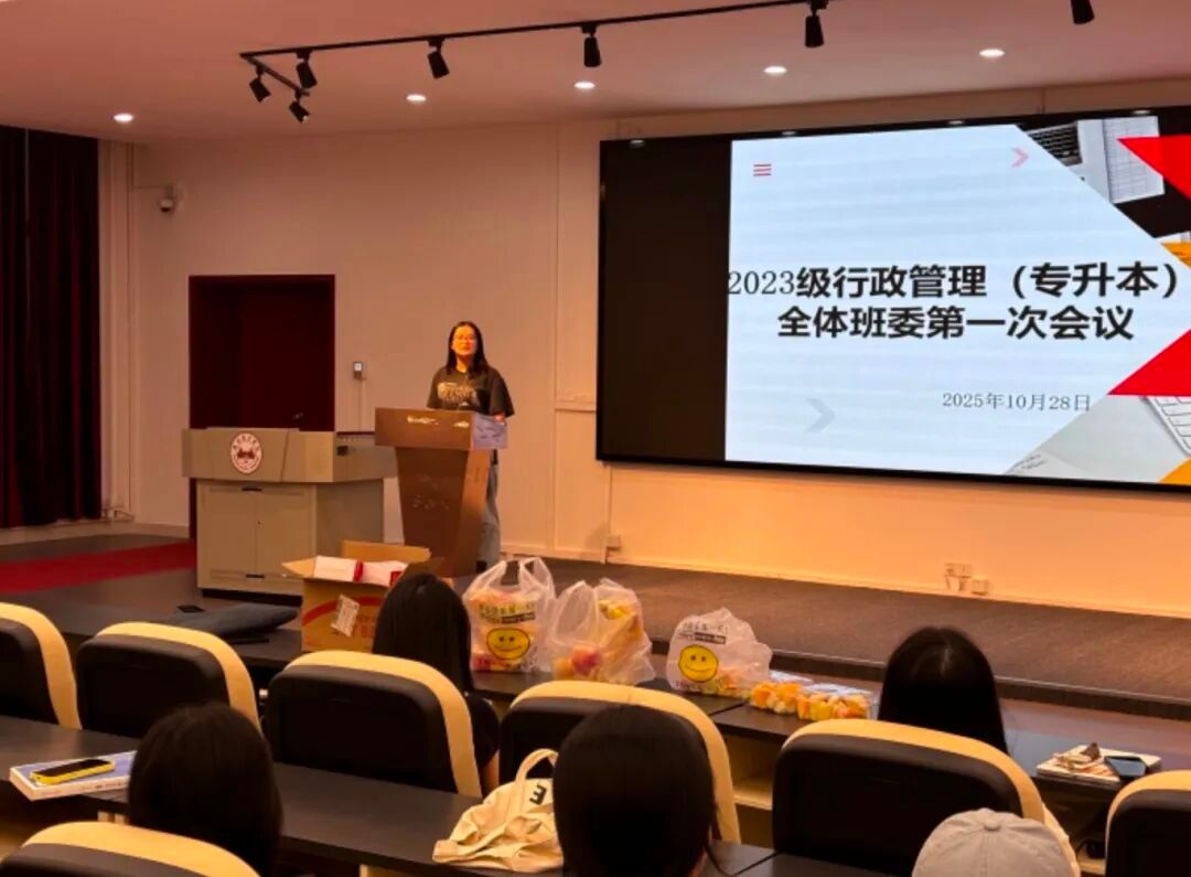 为夯实班级管理基础、明确后续工作方向,公共管理学院 2023 级行政管理(专升本)召开入学以来首次班委工作会议。会议伊始,1班长张文浩、2班长李隆琪、3班长叶焯炫、4班长郑惠莹先后对开学两个月的工作进行全面总结,从入学登记、材料收发等筹备工作,到日常考勤监督、通知传达等基础事务,再到中秋茶话会等班级活动组织,用清晰的数据与实例梳理工作脉络 —— 不仅建立班级信息互通群实现通知传达 “零延迟”,还收集并反馈涵盖课程安排、自习场地等核心问题的8项同学诉求;同时,班长们也坦言当前工作存在活动参与度不均、班委之间协作待加强等不足,并提出后续改进思路。