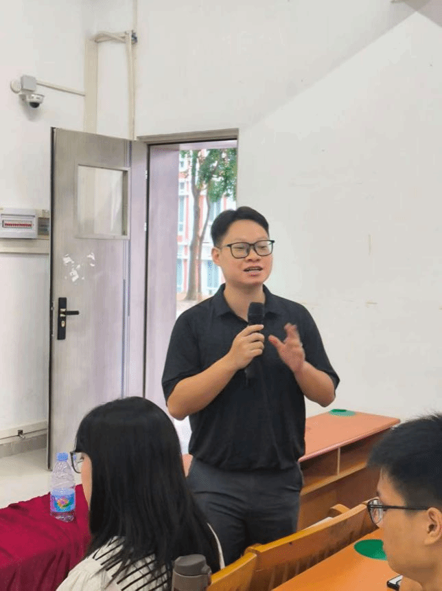 粤空数字化传播与运营产业学院教学副院长周先捷老师对产业学院情况进行介绍,着重阐述了产业学院“校企协同育人”的核心优势。他提到产业学院的实验班由学校老师与企业高管联合授课,还会组织学生去到企业现场,结合实际案例开展问题分析与方案设计教学。除了实验班,还有定制班,同样是校企协同授课,课程结束后还会颁发结业证。实验班和定制班不仅能让同学们学到行业实战知识、夯实专业应用能力,助力未来发展,表现出色者还有机会被推荐到企业实习及就业。