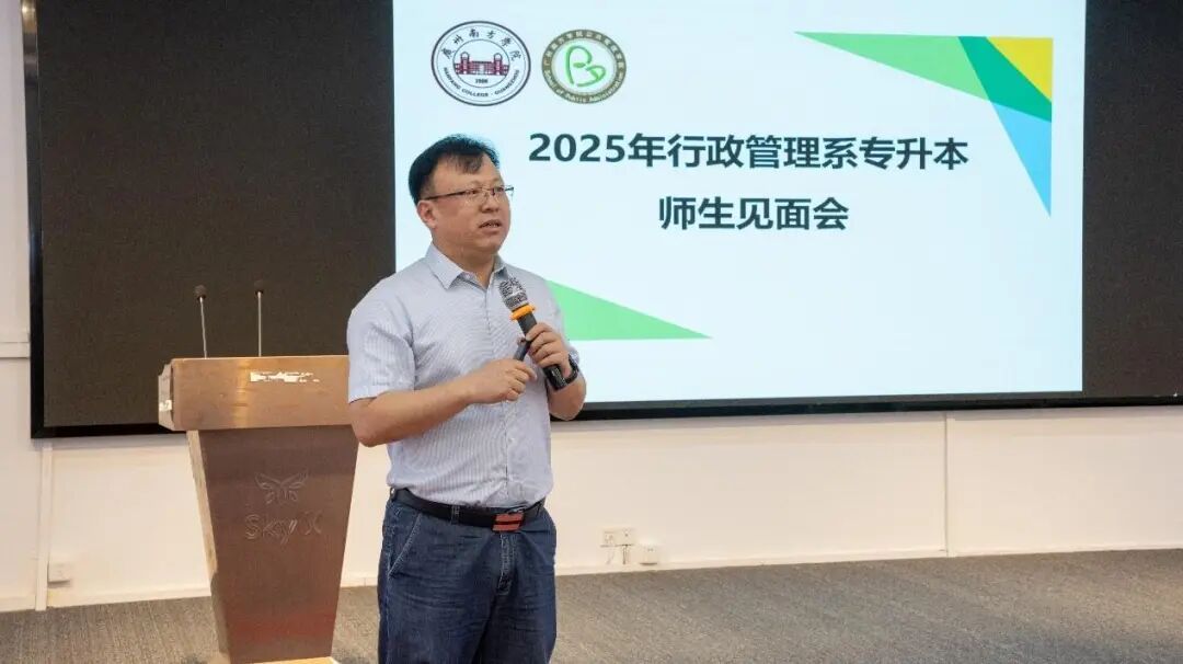 金秋九月,丹桂飘香。在这充满希望的开学季,2023级行政管理专业专升本新生怀揣对未来的憧憬踏入校园。为帮助新生快速融入专业集体、明晰学习方向,2025年9月10日下午,广州南方学院公共管理学院于粤空多功能报告厅如期举办行政管理专业专升本师生见面会。本次会议由行政管理专业系主任王政老师主持,陈天祥院长、行政管理专业负责人刘云东老师、行政管理专业教师及2023级行政管理专业专升本全体学生共同参会,携手为新生开启专业学习的新征程。