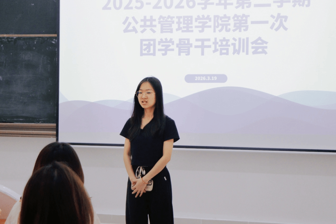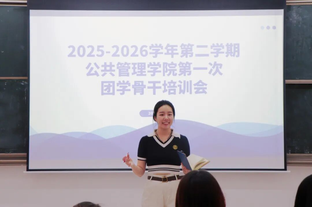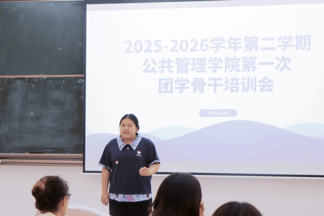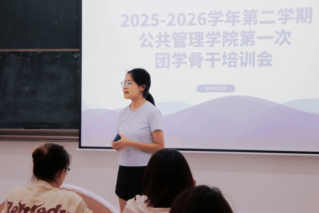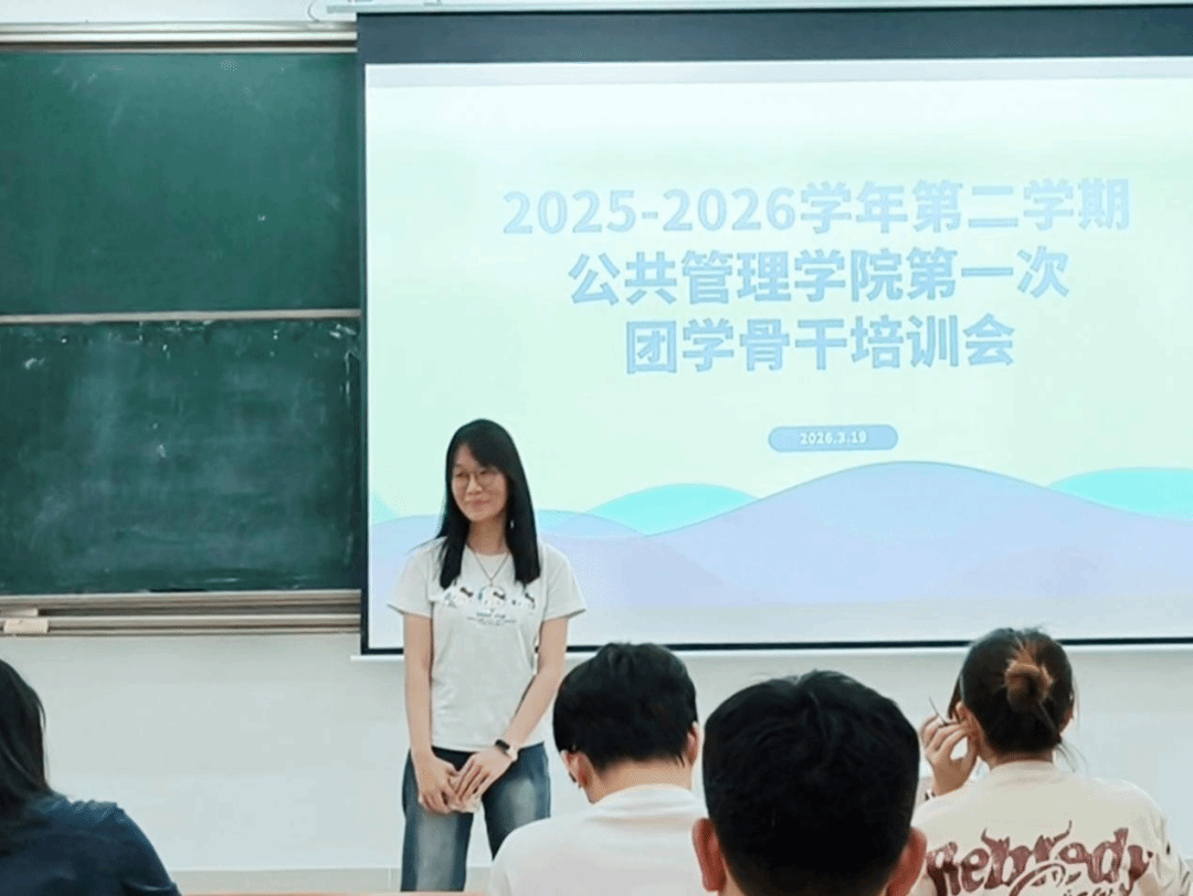 2026年3月19日,为确保新学期团学工作有序推进, 2025-2026学年第二学期公共管理学院第一次团学骨干培训会在教学楼6号(206室)顺利召开。本次会议由公共管理学院团委书记叶晓燕老师以及团委副书记兼24级辅导员梁颖姿老师及团学各部门部长共同参会。